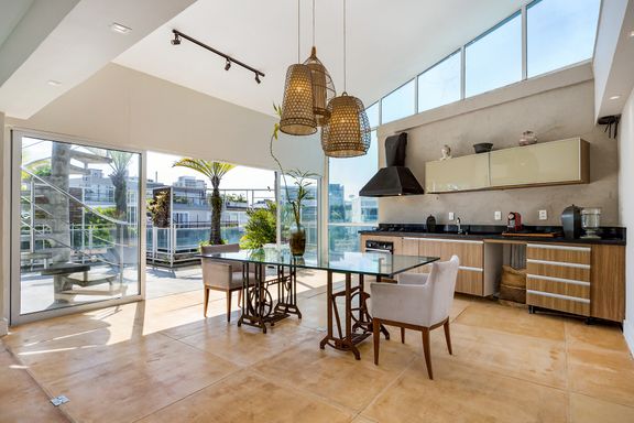 ALINE SOFIA CURADORIA DE IMÓVEIS É ESPECIALIZADA NO JOÁ, SÃO CONRADO E ITANHANGÁ. Descubra essa charmosa e confortável cobertura duplex de 6 quartos, sendo 4 suítes, ideal para quem busca um lar espaçoso, iluminado, com segurança e infra-estrutura completa em São Conrado! A vista panorâmica para a Pedra da Gávea com muito verde e mar é lindíssima! O imóvel é composto por sala em pé direito alto cheio de estilo, com clarabóia trazendo luz ao ambiente, ambientes de estar e jantar e lavabo. Na parte íntima, 5 quartos, sendo 1suíte principal com closet, uma segunda suíte com closet, uma suíte com armários e 2 quartos com armários, além de um banheiro completo na circulação. Na parte de serviço, uma aconchegante copa-cozinha com muitos armários, boa lavanderia, dependência de empregada e dispensa. Para o segundo andar, uma bela escada nos leva à uma área de convívio com espaçosa sala íntima em mezanino e ambiente de estar e Home- Theather, bar e refeições, muitos armários de apoio, lavabo, cômodo destinado à atividades físicas, sauna seca, ducha, terraço externo com churrasqueira, pia de apoio e piscina e uma pequena suíte usada como ateliê de costura. Há uma escada de apoio para o andar inferior. Cobertura no Condomínio Village, com toda segurança, pertinho de facilidades e infra-estrutura completa: piscina aquecida e infantil, restaurante, quadra de ténis e poliesportiva, academia, salão de festas, portaria social e de serviço, com controle 24 horas. Venha conhecer!