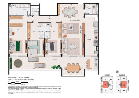A planta é excelente, o imóvel é repleto de iluminação natural, composto por bela sala com ambiente de estar e jantar, cozinha semi-integrada, lavabo, três quartos, sendo uma suíte principal e as outras duas canadenses.