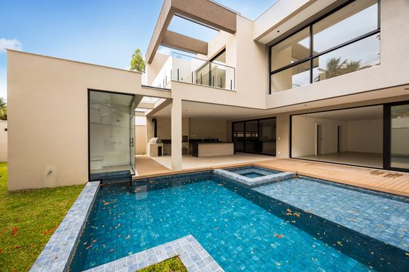 ALINE SOFIA CURADORIA DE IMÓVEIS É ESPECIALIZADA NO JOÁ, SÃO CONRADO E ITANHANGÁ. Surpreenda-se com a residência mais encantadora e impecável do Greenwood! Situada em um terreno plano e generoso, alia charme e modernidade na medida certa! A casa é uma duplex de planta espetacular, com muita privacidade e silêncio! No nível de acesso existe uma belíssima sala de estar com vários ambientes, conectada a uma grande varanda de contemplação para vista panorâmica, com mais de um ambiente externo de estar. Internamente lavabo, saleta de leitura, sala Home-theater, sala de jantar conectada à aprazível quintal com jardim gramado, excelente cozinha planejada e ainda um mini ateliê, lavanderia e dependência de empregados. Na área externa de jardim principal, piscina, sauna úmida, edícula climatizada com sala de estar, cozinha gourmet com churrasqueira. A escada de acesso ao nível superior é puro charme! No segundo andar da casa, uma suíte espaçosa e iluminada com armários e banheiro amplo com hidromassagem, circulação com armários, uma 2ª suíte com armários, e mais uma suíte canadense, onde 2 quartos dividem um confortável banheiro. E ainda, lazer com salão de jogos com mesa de sinuca, academia, e banheiro de apoio. Vaga para 5 carros. Sistema de irrigação automático, sistema de placas solares com usina de armazenamento de energia... conta de luz baixíssima! Um espetáculo de casa! Venha se encantar!