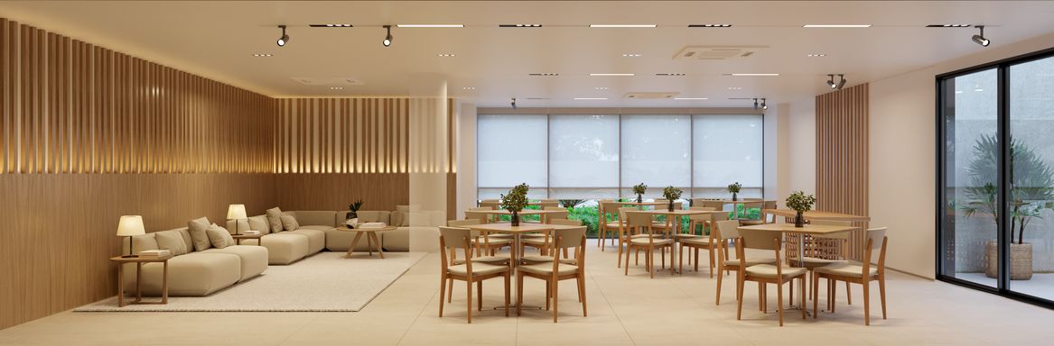 espaço Kids, salão de jogos, coworking com salas individuais, espaço