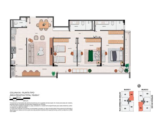 A planta é excelente, o imóvel é repleto de iluminação natural, composto por bela sala com ambiente de estar e jantar, cozinha semi- integrada, lavabo, três quartos, sendo uma suíte principal e as outras duas