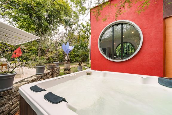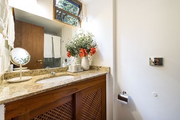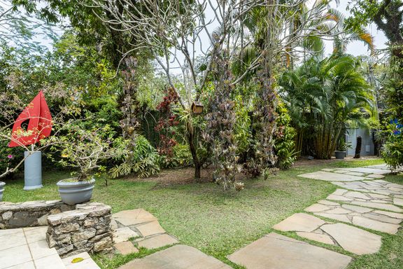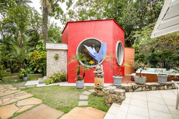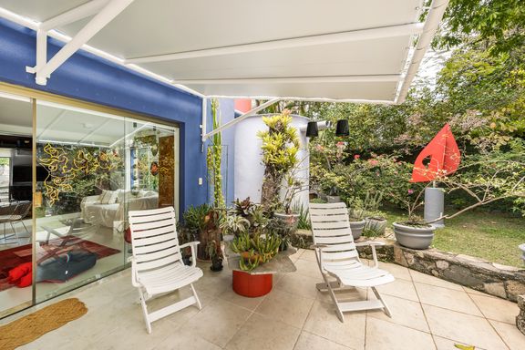 conforto, privacidade, silêncio e acessibilidade. A casa não tem excessos, ideal para um casal que trabalhe em casa, ou família pequena. Com a vantagem de ter um ateliê com banheiro, independente da casa principal, que pode vir a ser o Home-Office mais charmoso do Rio!