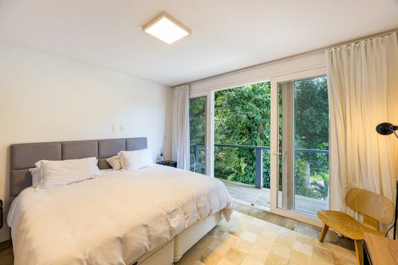 No andar superior, um maravilhoso mezanino tipo family room, com vista para a sala, mais três suítes completas com marcenaria planejada, varandas e vista privilegiada, incluindo uma com visão frontal para a Pedra da Gávea.
