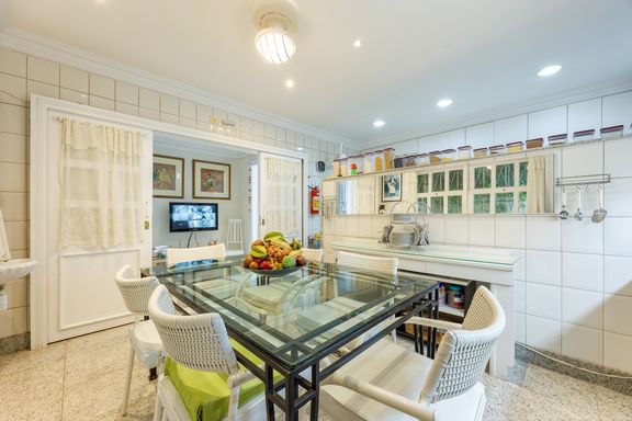 São duas salas com janelões frontais e acesso ao deck com piscina aquecida, sala de jantar, home theater, lavabo e copa cozinha, com cômodos muito ventilados e iluminados.