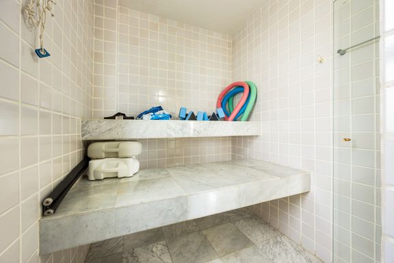 Possui ainda dois decks panorâmicos, sauna com vestiário, sala de ginástica, churrasqueira, quadra de esportes, jardim e quintal.